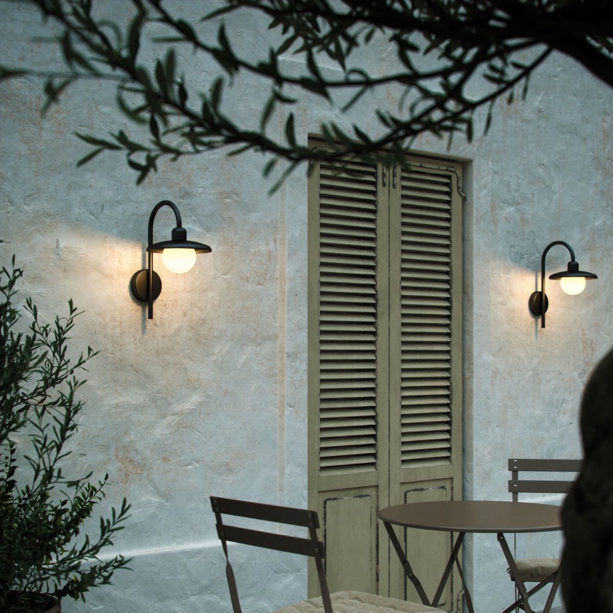 Aplique de pared, E27 60W, construido en metal terminacion negro, con difusor en policarbonato opal. Incluye lampara LED bulb 12W, blanco calido 3000K, Philips o similar.