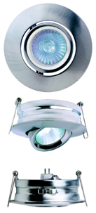 Luminaria para empotrar fijo, GU5,3 50W, construido en inyección de zamak color blanco, con aro secundario de fijación en cielorraso, inlcuye transformador electromagnético 230V/50W/12V y lámpara dicroica 50W/12V/38º.IP 20Modelo: (DL322) China
