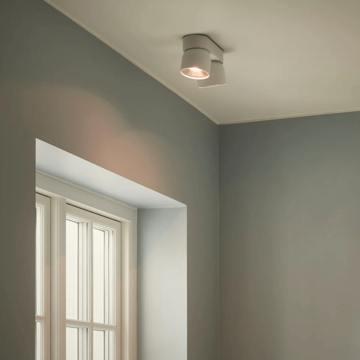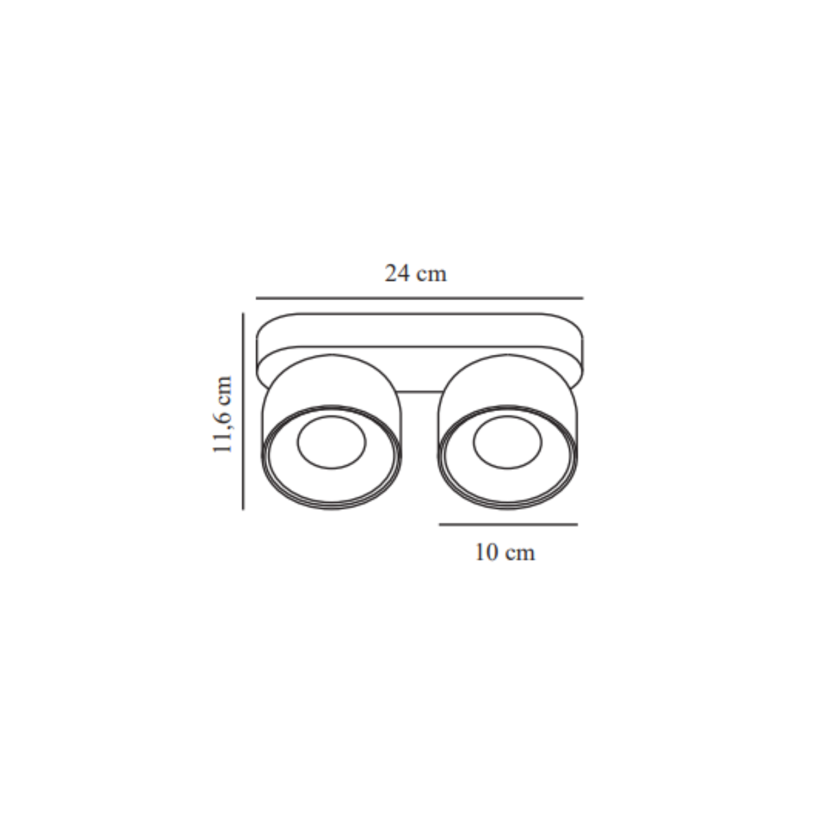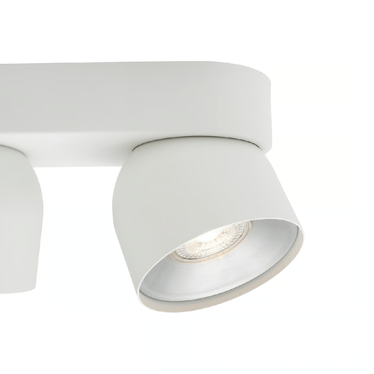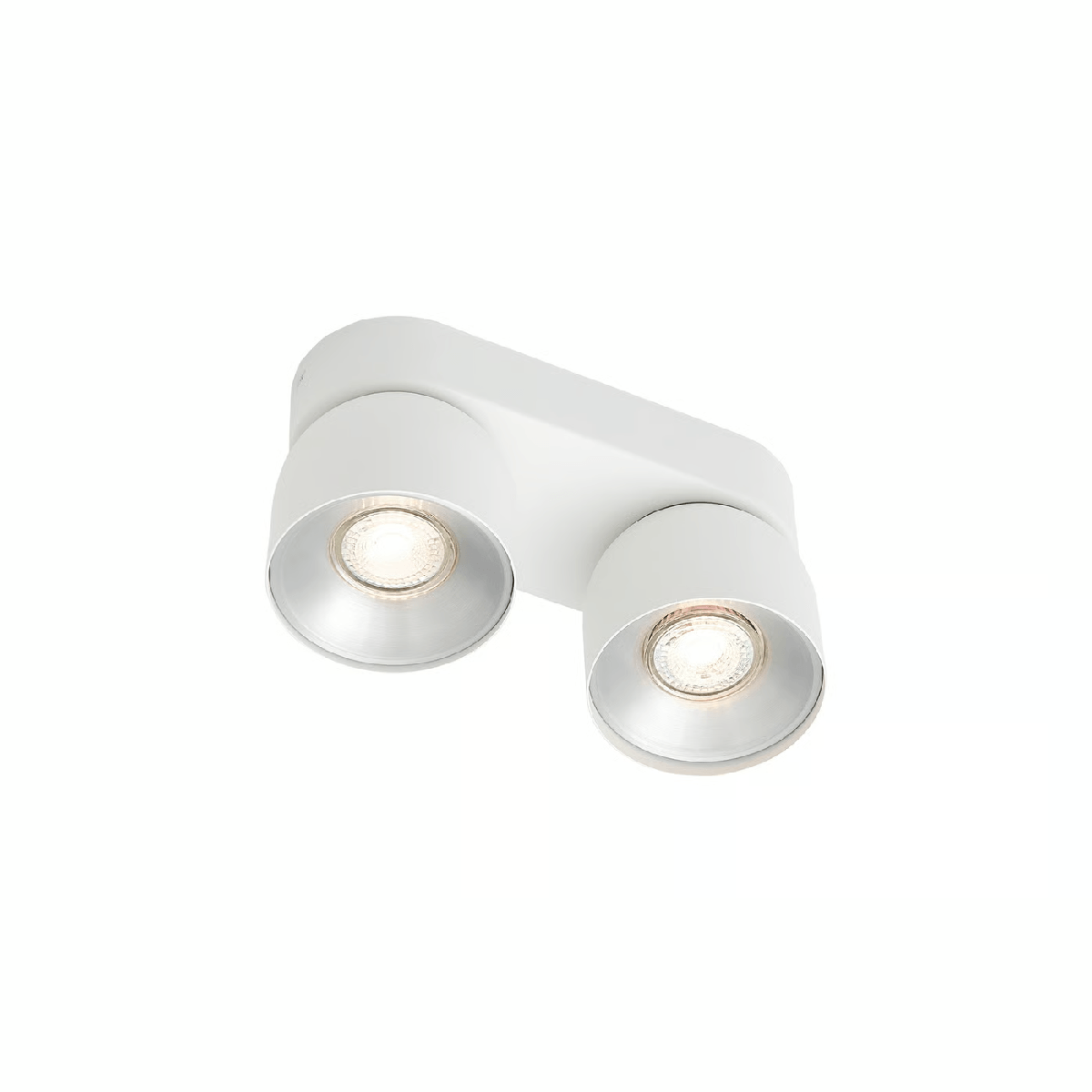 Aplique de pared orientable, 2 GU10 5W, cuerpo construido en aluminio, terminacion blanco. Incluye lamparas LED GU10 5W/240V/38° dimmerizable blanco calido 2700K, 400lm Philips o similar.